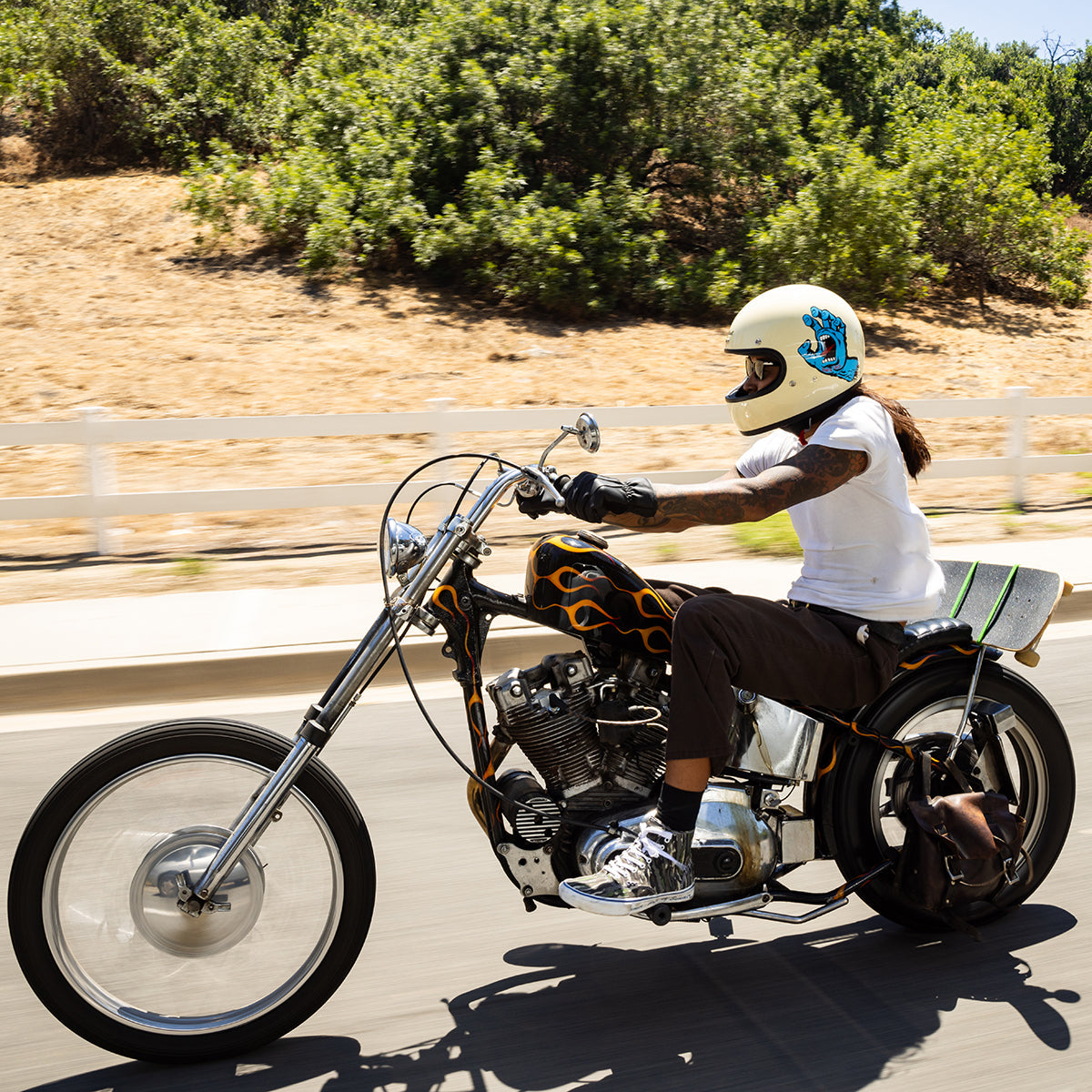 Colaboración Santa Cruz: El diseño gráfico único inspirado en la legendaria marca de skate Santa Cruz le da un toque exclusivo y llamativo, perfecto para los motociclistas que buscan destacar en la carretera.
